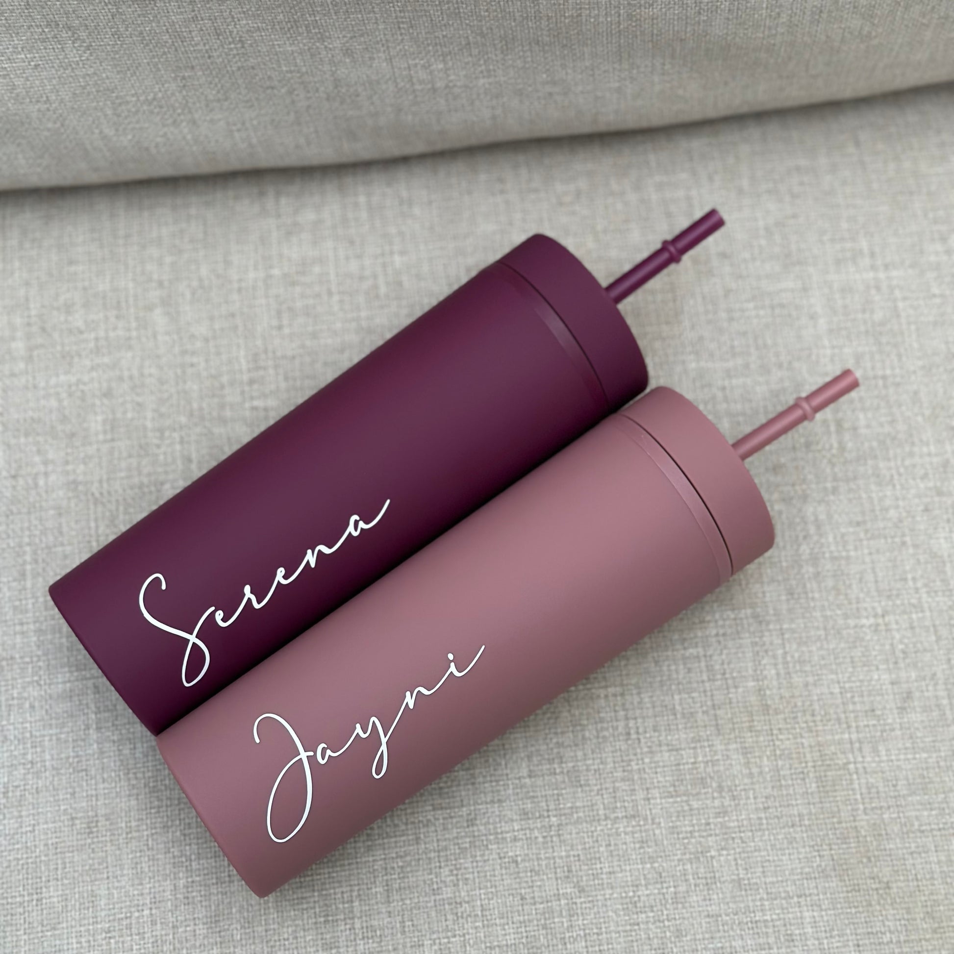 Each tumbler includes a matching lid and straw and is built for everyday use. Hand wash only to maintain the finish and personalised design.