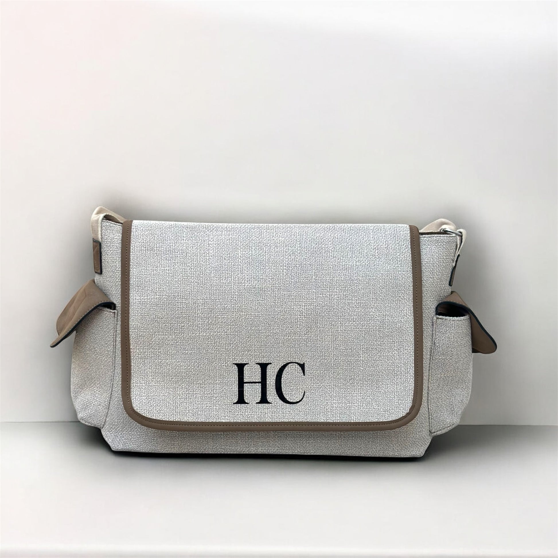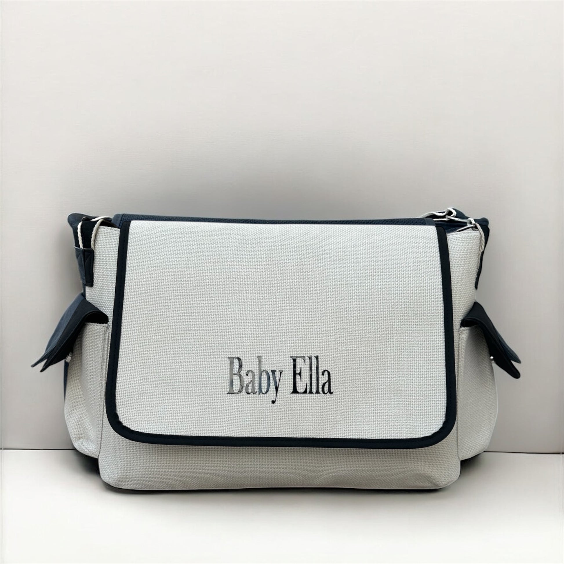 This personalised baby bag combines practicality with a premium, customised finish. Designed for parents who need a reliable everyday carryall, it offers generous space, thoughtful storage and a clean, modern look. Your chosen initials or name are added to the front of the bag, creating a distinctive and polished design. When a full name is selected, the text is adjusted in scale to maintain a balanced appearance.